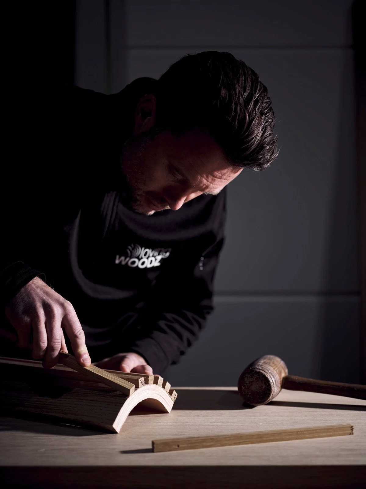 Interieurs hebben me altijd al gefascineerd. Het is dat gevoel dat je krijgt als je ergens binnenkomt. Dat zegt voor mij alles en dat gevoel wil ik creëren. Ik geloof in een warme en tijdloze stijl, een stijl verrijkt met ambachtelijke details. Dat maken we in eigen beheer en met eigen handen. Ik geloof in hout, niet alleen omdat het mooi is maar omdat het leeft, het verbindt, het vertelt verhalen. Dat gebruiken we om interieurs te maken die echt iets voor je doen. Wij maken interieurs voor de mooiste momenten in je leven.